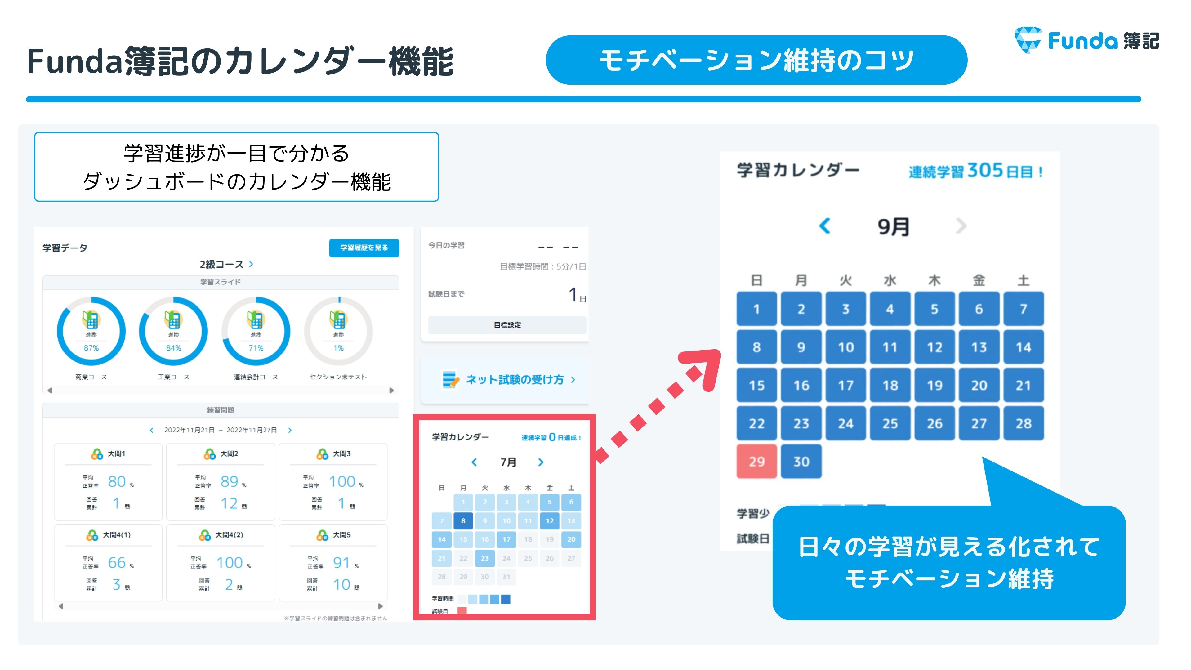- 学習カレンダーのおかげで1時間の勉強を305日継続