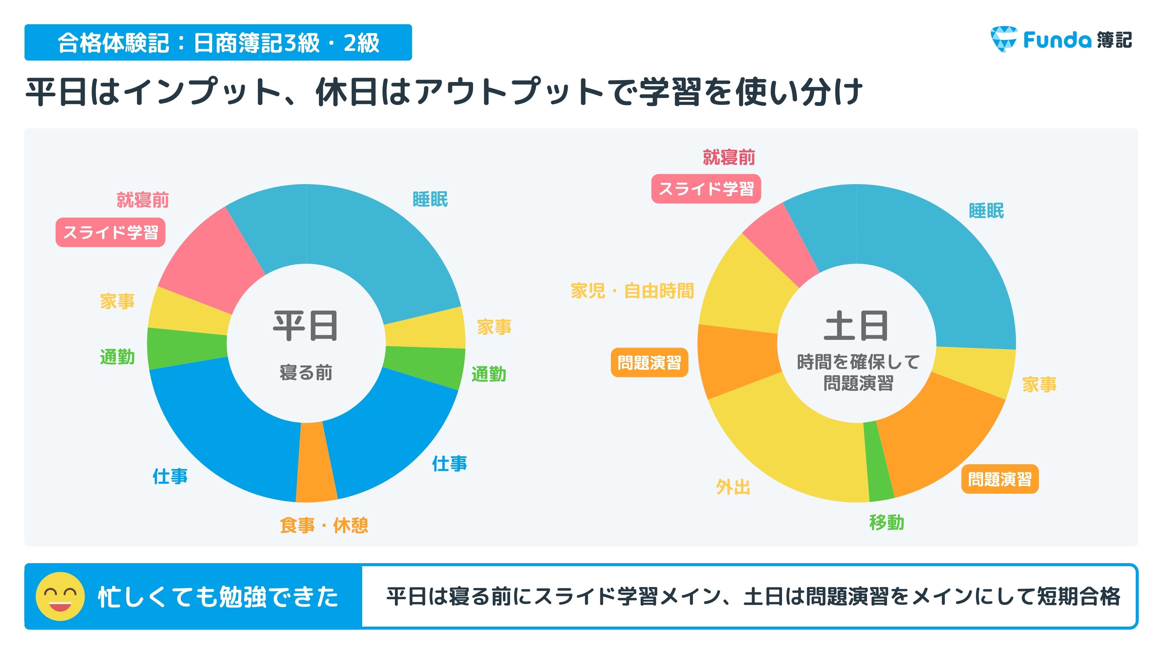 平日は帰宅が遅いためそれが限界でしたが、土日はまとまった時間を確保して、問題演習に集中して取り組みました。