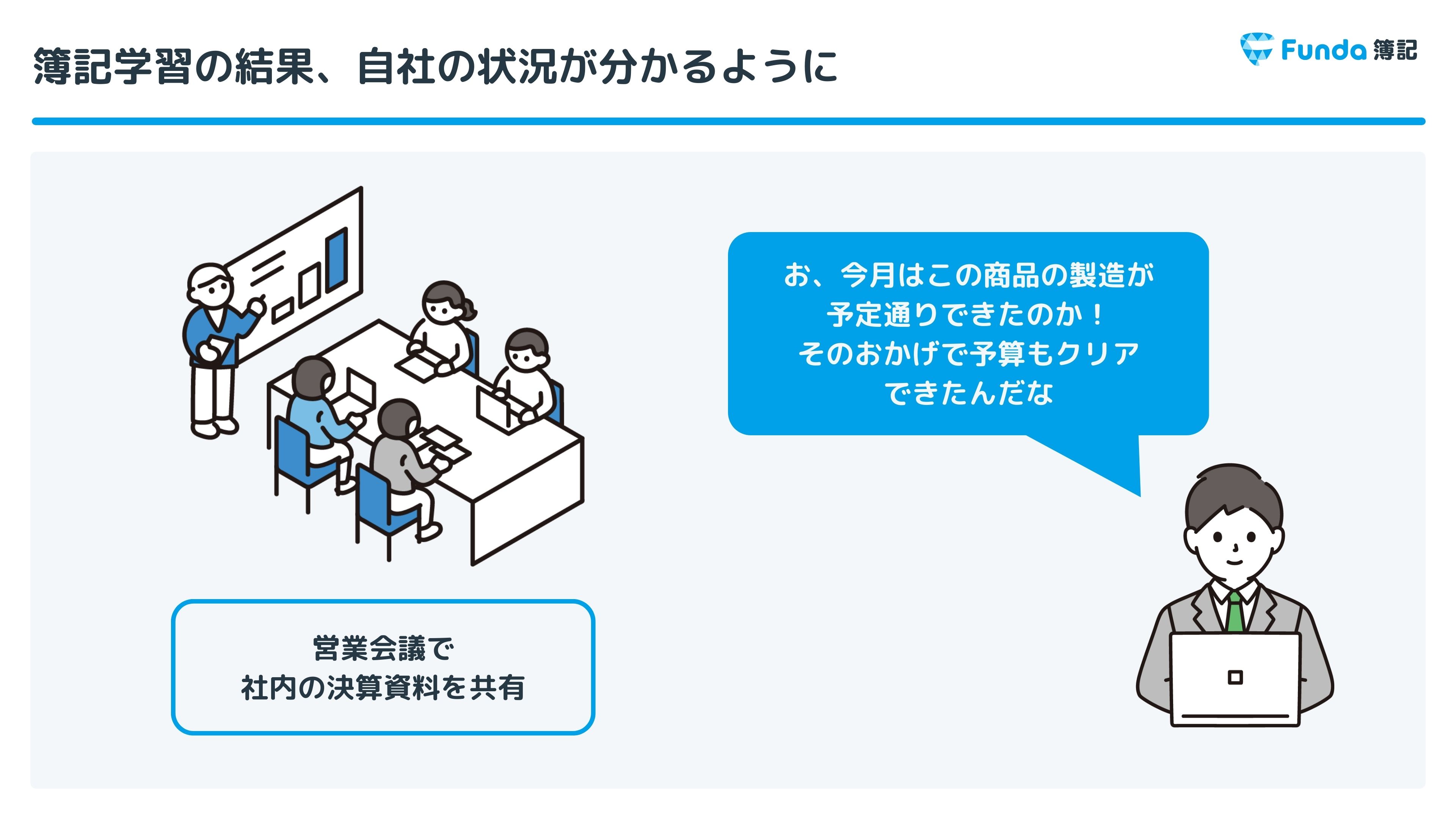 ただ、私の会社では月に一度、社内の決算資料が営業部門にも共有されるのですが、その内容が以前よりもしっかりと理解できるようになりました。