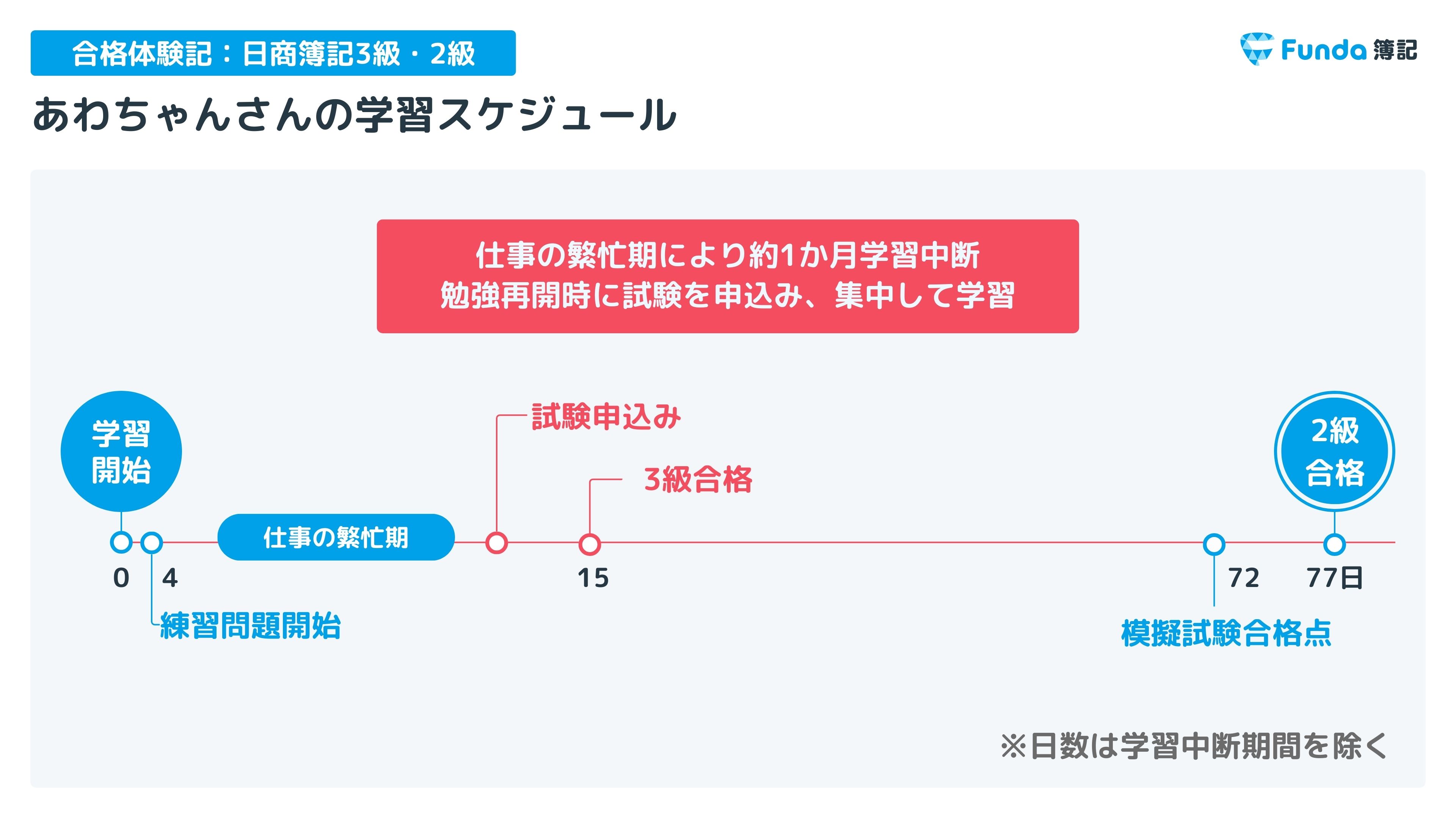 はい。私の仕事は1月から2月中旬にかけてが特に忙しく、Funda簿記に申し込んだ直後にちょうど繁忙期に入りました。 その間は、ほとんど勉強できませんでした。